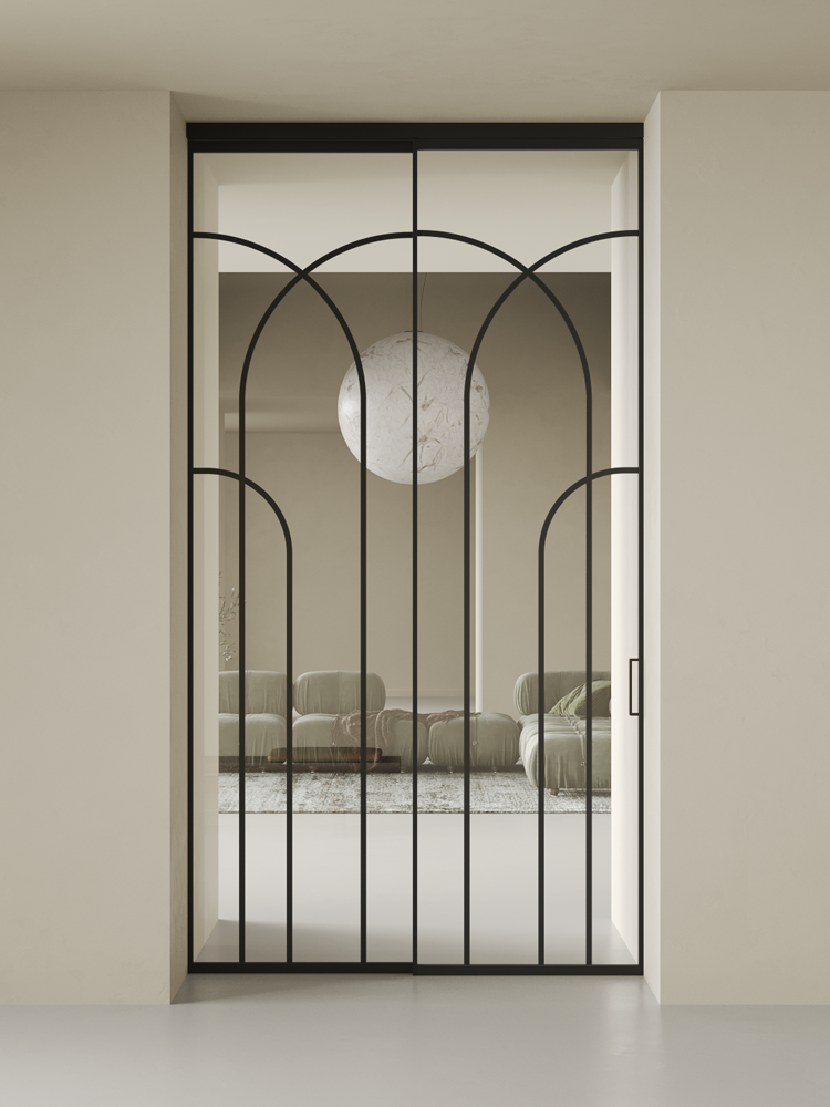 Купить дверь Diva 1 черная стекло осветленное с аркой 2 в Кингисеппе с установкой и доставкой